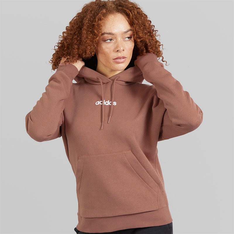 adidas Womens Essentials Linear Logo Fleece Hoodie Warm Clay/White