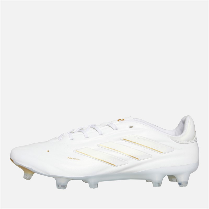 - adidas low profile lace up firm ground football boots. From brain to boot, and back again. Connect with the ball on every level in adidas Copa Pure 2. High-performance features and classic details converge in these comfortable Elite football boots. Their quilted Fusionskin leather forefoot delivers a soft touch. The specialist firm ground outsole makes for unhurried play on dry, natural grass. IG8710