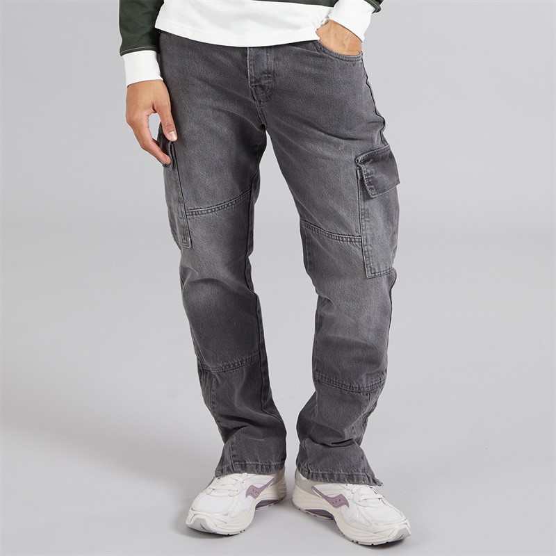 Brave Soul Mens Station Loose Fit Cargo Jeans Grey