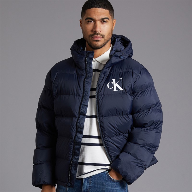 Calvin Klein Mens Monogram Puffer Coat Dark Sapphire