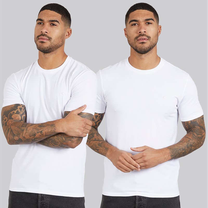 Calvin Klein Mens Two Pack Stretch Slim T-Shirts Bright White/​Bright White