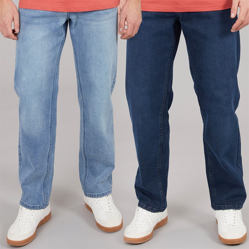 Kangaroo Poo Mens Two Pack Straight Fit Denim Jeans Dark Wash/Light Wash Dark Wash/Lt Wash