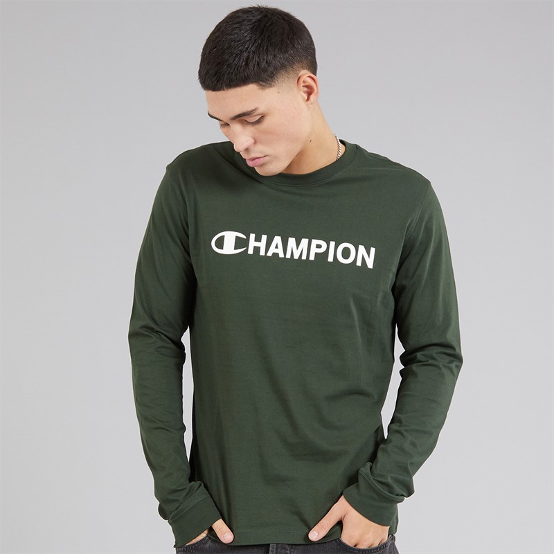 Champion Mens Graphic Shop Logo Long Sleeve T-Shirt Military Green