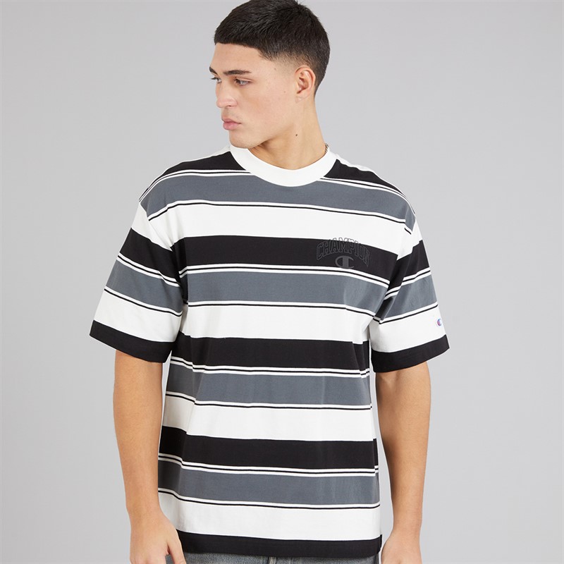 Champion Mens State Of Play Logo Striped T-Shirt White/​Grey/​Black